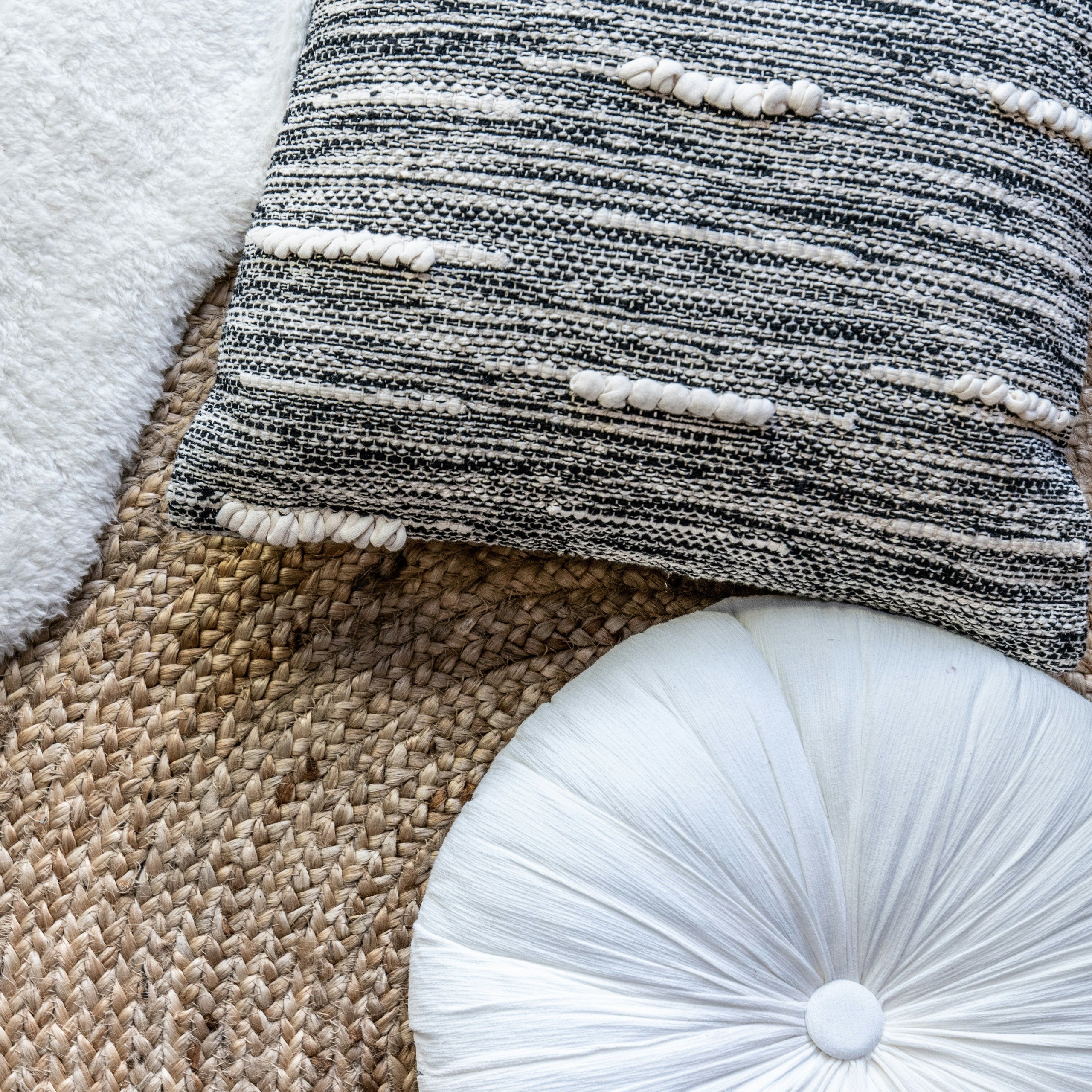Dekoratives, weiches Kissen mit geometrischem Muster in Elfenbein und weißer Farbe